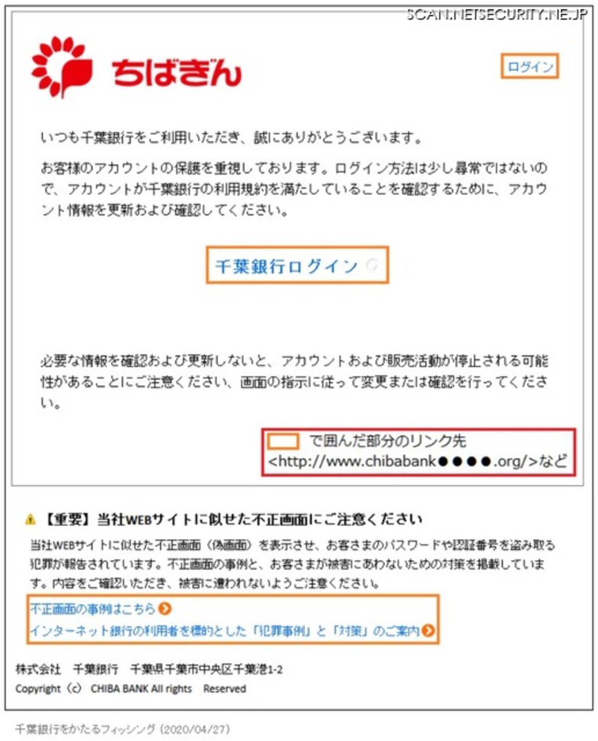 千葉銀行をかたるフィッシング 04 27 一般社団法人セキュリティ対策推進協議会 Spread